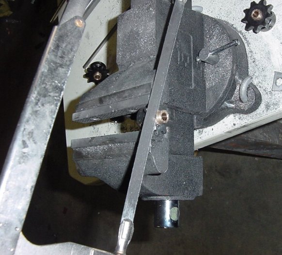 Cutting the excess bushing off. The bushings were about 1/4" longer than the sprockets, so they overhung. Cure: Hacksaw and Vise |